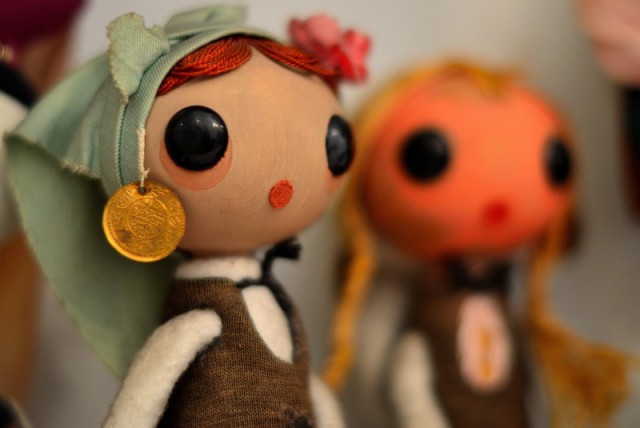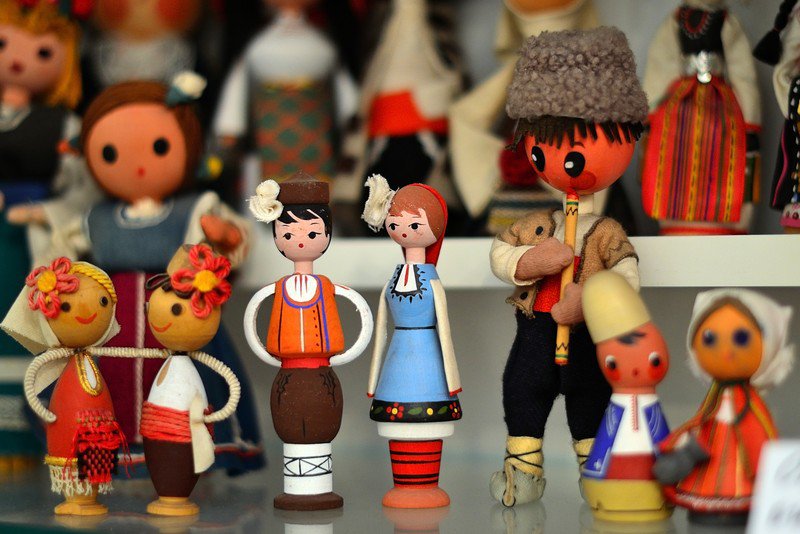Куклите в народни костюми са най-колоритни: има от 40-50 см високи до 2-3 см. Всяка е стилизирано копие на носия от даден географски район на България. Добруджанките се познават по жълтите, като цвета на житото, забрадки, вързани така че да не ги смъква вятъра, родопчанките са с характерните червено-оранжеви престилки на жълти квадрати, тракийките са с ярки и богати орнаменти, а Лазарките са винаги с шапки от цветя. Героите от български народни приказки са друга серия: Златка Златното момиче, От вар момиче, Неродена мома…