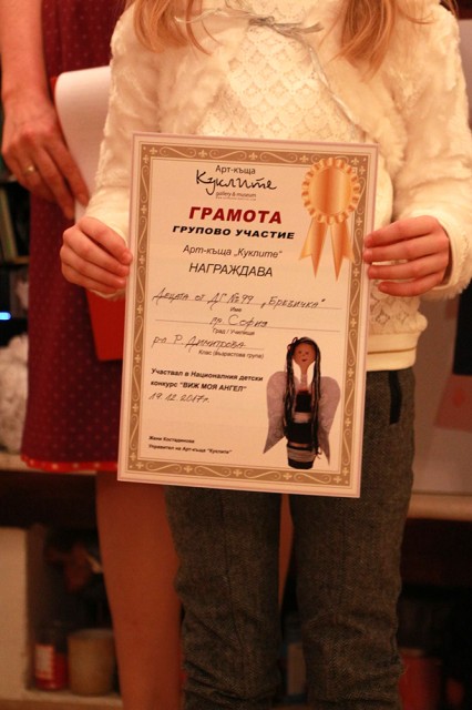 Благодарим на всички деца за ангелите, за красивите им и смислени творби и се радваме, че на 19 декември 2017 г. ги събрахме в Арт къща Куклите, за да получат отличията си. Наградите връчи Биляна Генова, директор на дирекция „Култура” към Столична община.